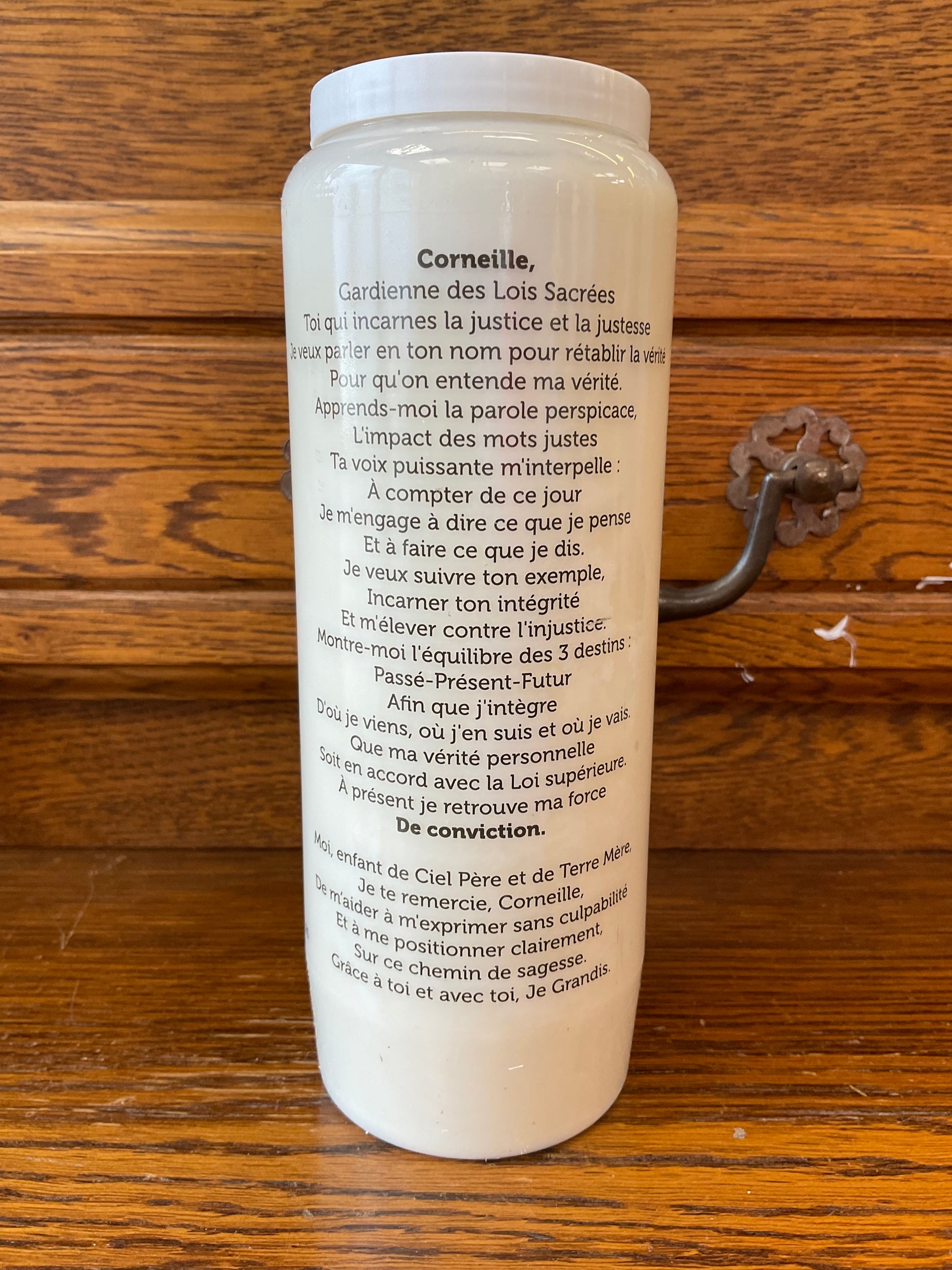 Allumée, cette bougie vous invite à la sincérité, à l’intégrité et à l’équilibre entre passé, présent et futur. C’est un rituel de conviction et de confiance en soi.