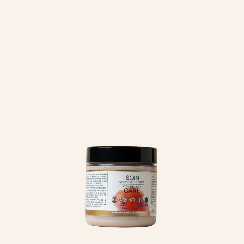 Le Soin Cheveux Colorés soigne avec douceur les cheveux colorés en minéral ou végétal. Concentré en actifs antioxydants avec notre brevet Keraguard® et des actifs rares de Sang du Dragon, il protège la fibre capillaire pour une couleur éclatante et lumineuse, jour après jour.